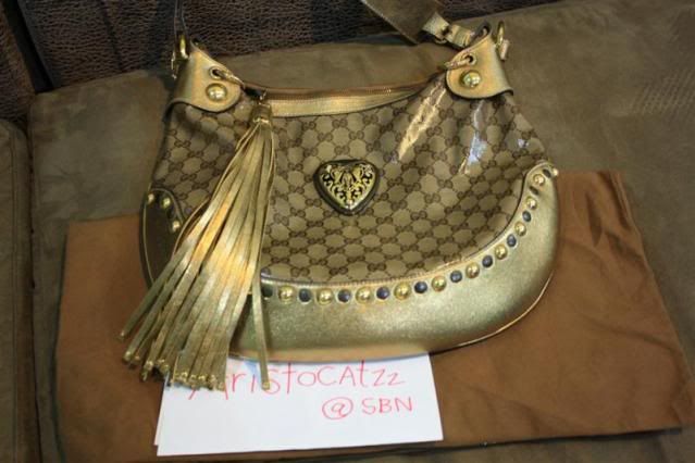 [SIZE="5"]2. เป็นกระเป๋าสะพายตอกหมุดสีทอง รุ่น HYSTERIA อะไหล่ทองยังใหม่ และเงามากค่ะ สภาพนี่ 100%