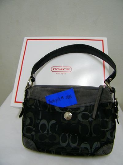 6.COACH CHELSEA OPTIC BLACK GRAY HANDBAG PURSE #7035