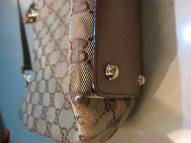 สายสะพายยังแข็ง ผ้ายังสภาพดี แต่มุมก้นกระเป๋ามีรอบถลอกนิดนึงอยู่สองมุมค่ะ