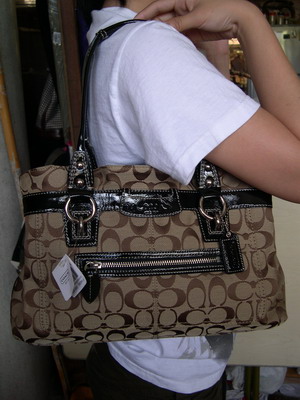 2.Coach Signature Stripe Convertible Shoulder Tote 13674สีดำ 5200 บาทค่ะ