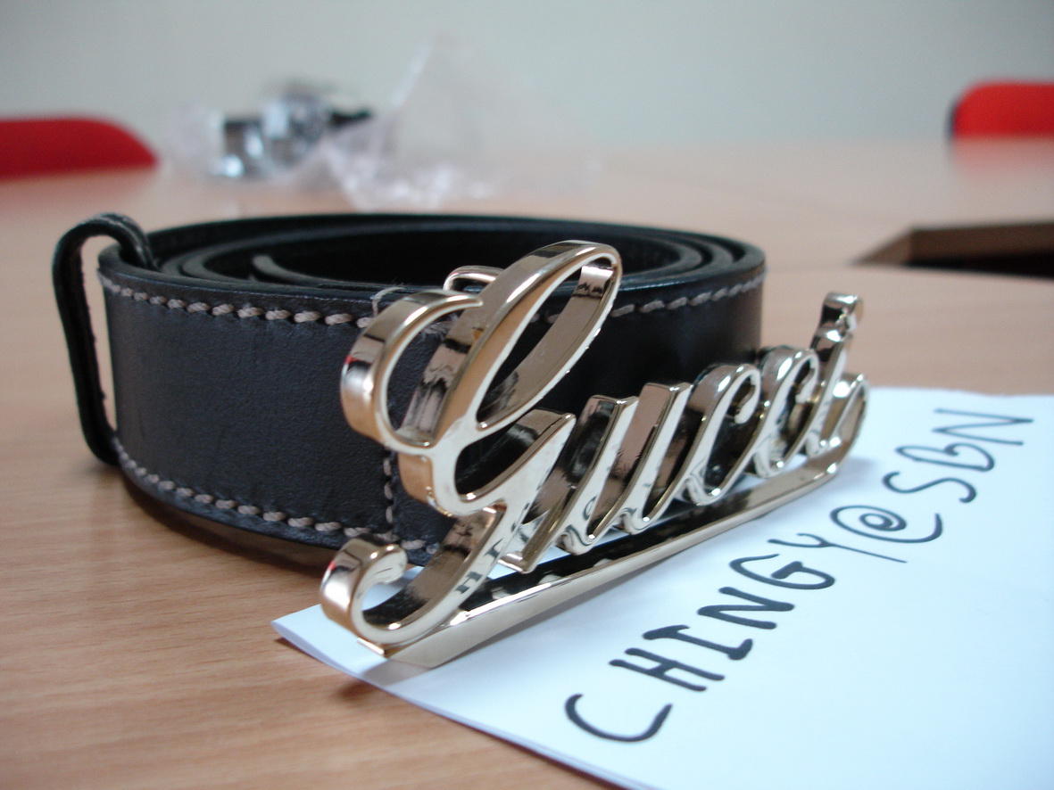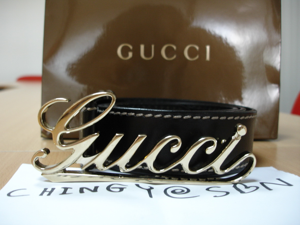 TM: SALE!!! เข็มขัดผู้ชาย GUCCI Pink Gold สายหนังแท้รุ่นนี้หายากสภาพสวย