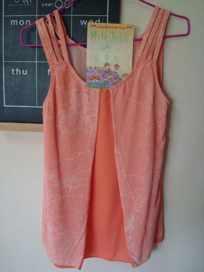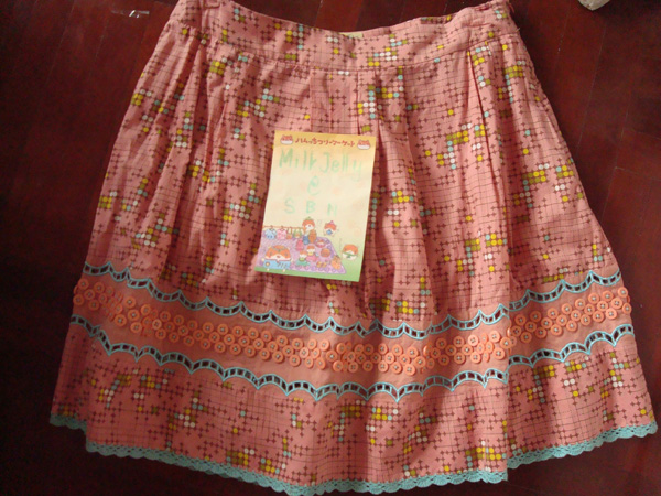 8. KLOSET กระโปรงสีส้มอมชมพู ประดับกระดุมรอบตัว สภาพเหมือนใหม่ค่ะ มีรอยเข็มกลัดๆกับด้ายรันเล็กๆที่เอวตามรูปค่ะ ไม่สังเกตไม่เห็น ไซส์ M