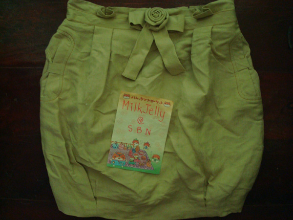 10. KLOSET กระโปรงประดับกุหลาบ สีเขียวตอง ไซส์ M ของใหม่ ป้ายห้อยค่ะ ในรูปยับ แต่รีดออกมารับรองสวยเหมือนเดิมค่ะ