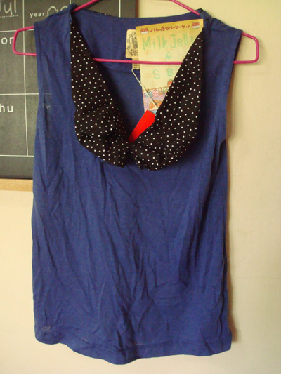 5. KLOSET เสื้อแขนกุด สีน้ำเงิน ตกแต่งผ้าลายจุด ตรงปกน่ารักค่ะ ของใหม่ ป้ายห้อย ไซส์ S ค่ะ
