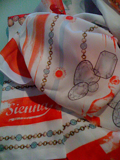 ====ผ้าพันคอจากร้าน Sienna สวยมากกก ขนาด 100 x 100 cm ค่ะ มีผืนเล็กไว้ผูกระเป๋า หรือผูกผมเก๋ๆ ด้วยค่ะ ขาย 1,690 ค่ะ ====