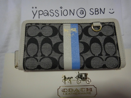 20.COACH Heritage Stripe Accordian Zip-Around Wallet เป็น PVC นะคะ รักษาง่าย ทนทาน ทำความสะอาดง่ายค่ะ (พร้อมการ์ด+กล่อง+กระดาษห่อ) กระเป๋าสตางค์ ราคาใบละ 5300 บาท