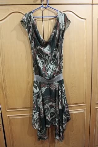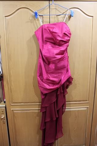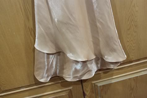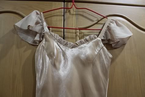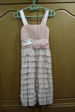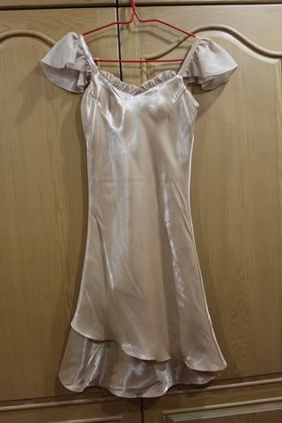 ตัวต่อไปเปนเดรสสีทอง เรียบๆ ดูหรูหราน่ารัก ใส่ครั้งเดียวเช่นกัน ผ้าเปนไหมญี่ปุ่นประดับชีฟองที่แขนคะ ยาว 36.5 นิ้ว อกไม่เกิน 33 นิ้ว เอวไม่เกิน 27 นิ้ว สะโพกไม่เกิน 35 นิ้วคะ... ดูยับหน่อย เพราะแม่ค้าเก็บไว้ในตู้อ่ะคะ -*-