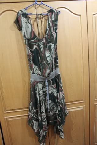 ชุดสุดท้ายเปนเดรสผ้าชีฟอง เอวจั้พ เปนลาย graphic ดูหน้าค้นหา ข้างหน้าเปนคอถ่วงคะ ข้างหลังมีโบว์ให้ผูก เอวเปนยางยืด free sizeคะ ใส่ครั้งเดียวเช่นกัน ไม่มีตำหนิ ยาวประมาณ 32 นิ้ว แต่ปลายจะไม่เท่ากันนะคะ
