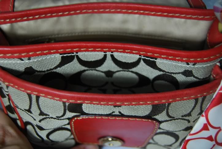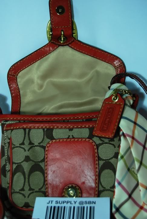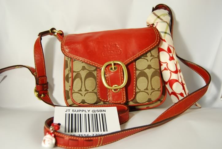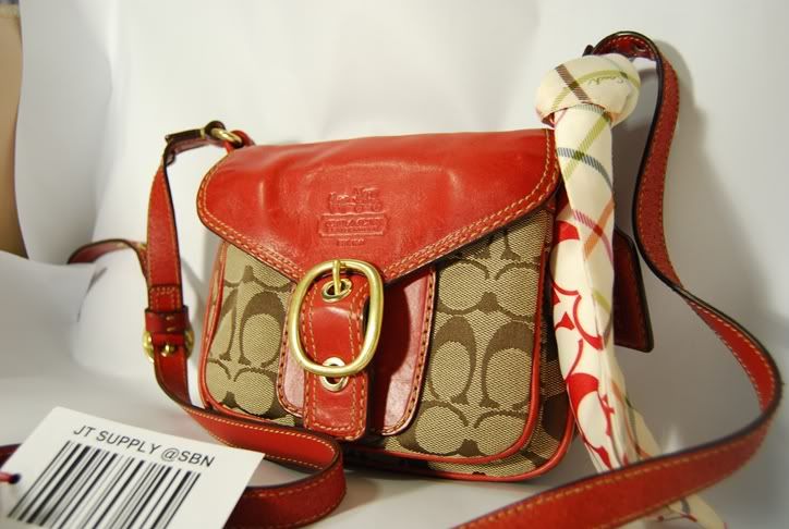 3. USED COACH สีแดง สะพายคาดข้าง มีผ้าผูกเก๋ๆด้านข้าง