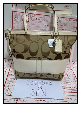ใบแรก รุ่นคลาสสิค 13549 COACH SIGNATURE STRIPE WHITE TOTE BAG PURSE
