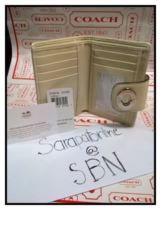 Approx size: 3.75 x 5.25" ,six credit card slots,one outside zipper pocket on back turnlock closure,silver hardware,photo ID holder