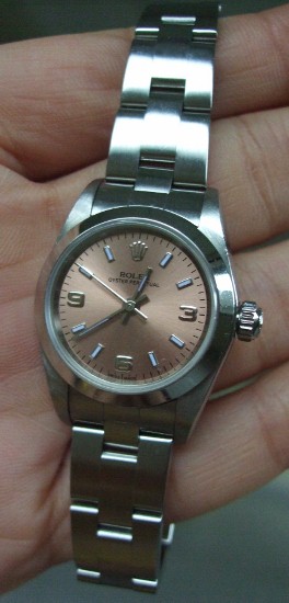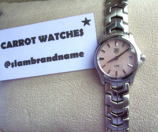 หน้าปัดมุกสีชมพูขนาด 24 mm สายสีเงินเงาสลับด้าน สภาพสวย 32,900 บาท