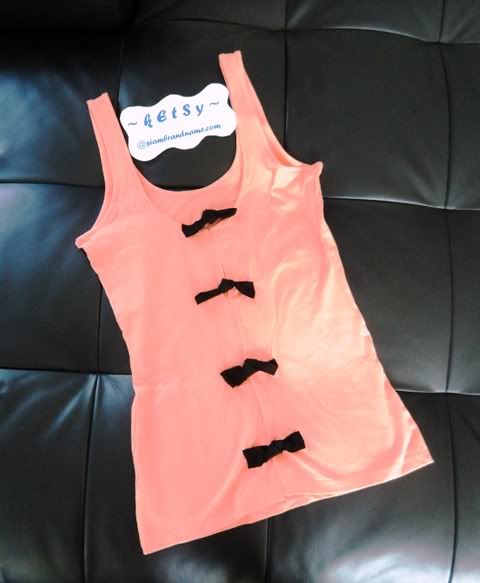 ASOS เสื้อก้ามเข้ารูปสีโอรส ด้านหน้าจะเป้นเรียบๆๆธรรมดา แต่ด้านหลังน่ารัก เก๋สุดๆๆ ด้านหลังผ่ายาว แล้วประดับด้วยโบว์สีดำเป็นช่วงๆเหมือนกระดุมโบว์
