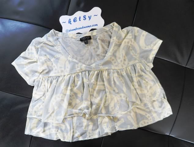 Topshop เสื้อสีฟ้าสลับครีมเอวลอย เสื้อระบายๆๆ 2 ชั้น