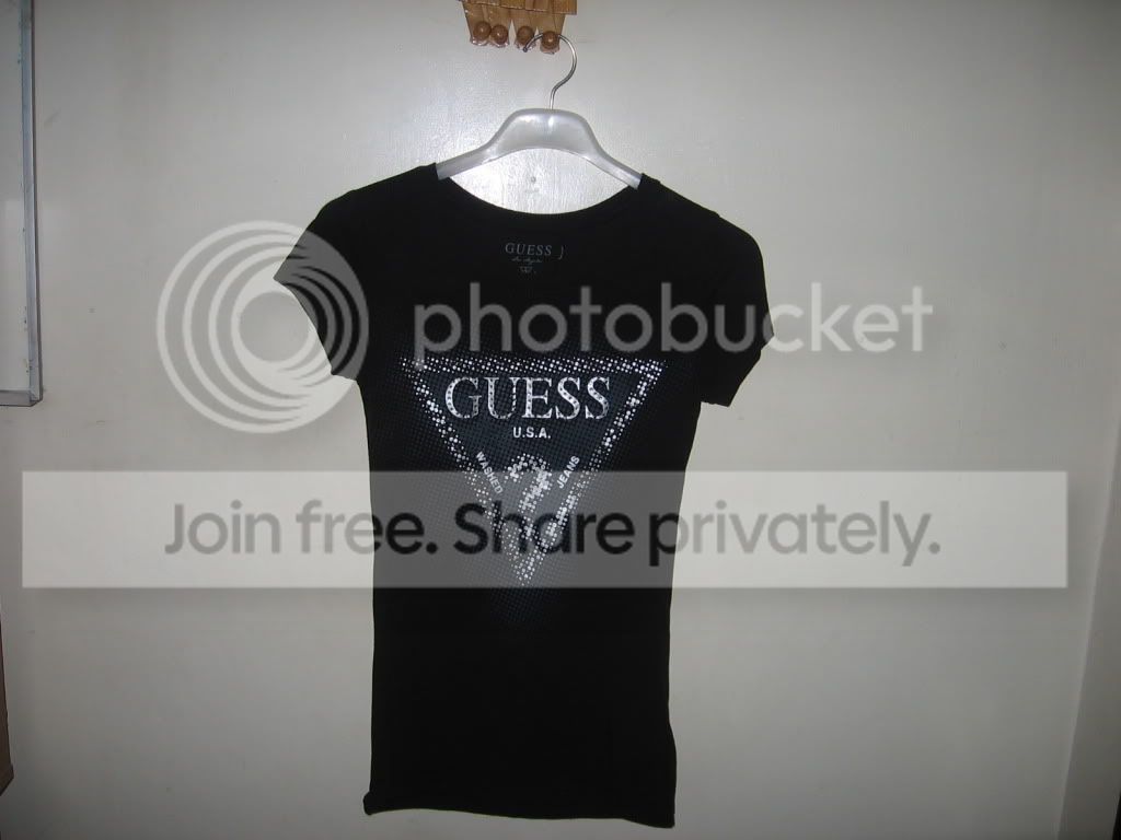 ไม่พูดมากแระ guess ชนชอปเซลทรัลลาดพร้าว สีดำ สกรีนปักเพชรทั้งหมด หรูหรามากเก๋อะ size m รึ s ก้ใส่ได้ไม่ใหญ่อะ เปงเสื้อยืดผ้ายืด ใส่หนเดว สภาพดีมาก หนุ่มสอยมาฝากนะ จบ