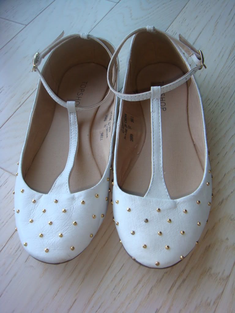 Topshopรองเท้าบัลเล่ต์สีขาวตอกหมุดทอง size37