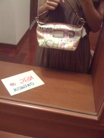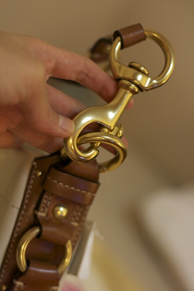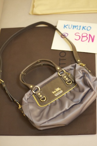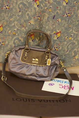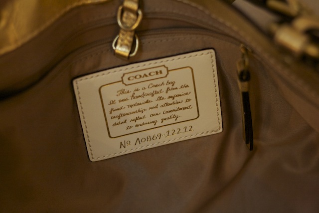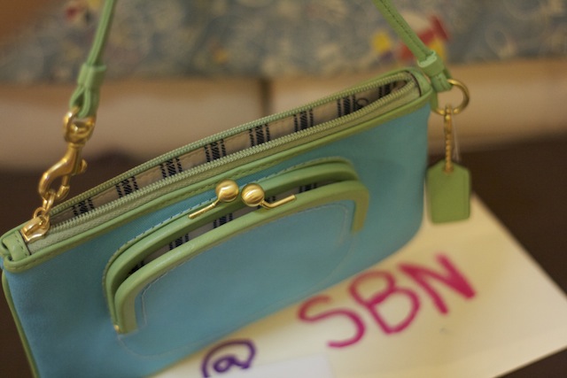 Coach Hand Bag (Store Display)+Care Card สภาพดีมาก สายหนังเขียว หมุดทอง ข้างในลายกะลาสี
