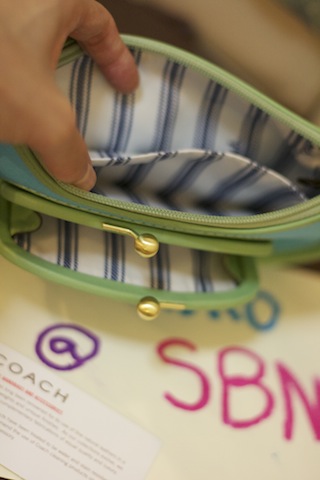 Coach (Store Display) หนังแท้สีครีม ข้างในสีฟ้าขนาด 10 x 13" ไม่มีแคร์การ์ด หนังมีรอยเปื้อนตรงฐานนิดหน่อย ไม่เคยใช้นะคะแต่ซื้อมาตอนsale store display ส่งต่อเอาไปเลยค่ะ ถูกๆ