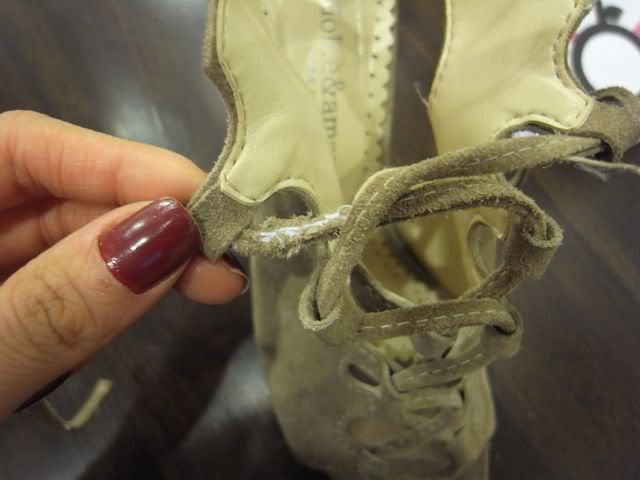 รองเท้า Footwork สีเทาส้นเปนไม้ก็อกสูงประมาน 4" size 37 ค่ะ มีตำหนิตามรูปนะคะ ขาย 2000 ค่ะ ไม่มีกล่อง