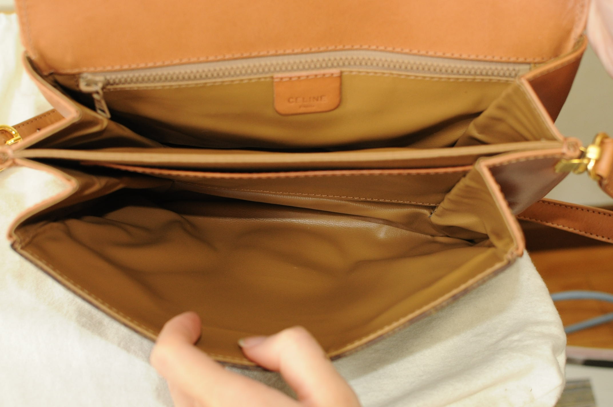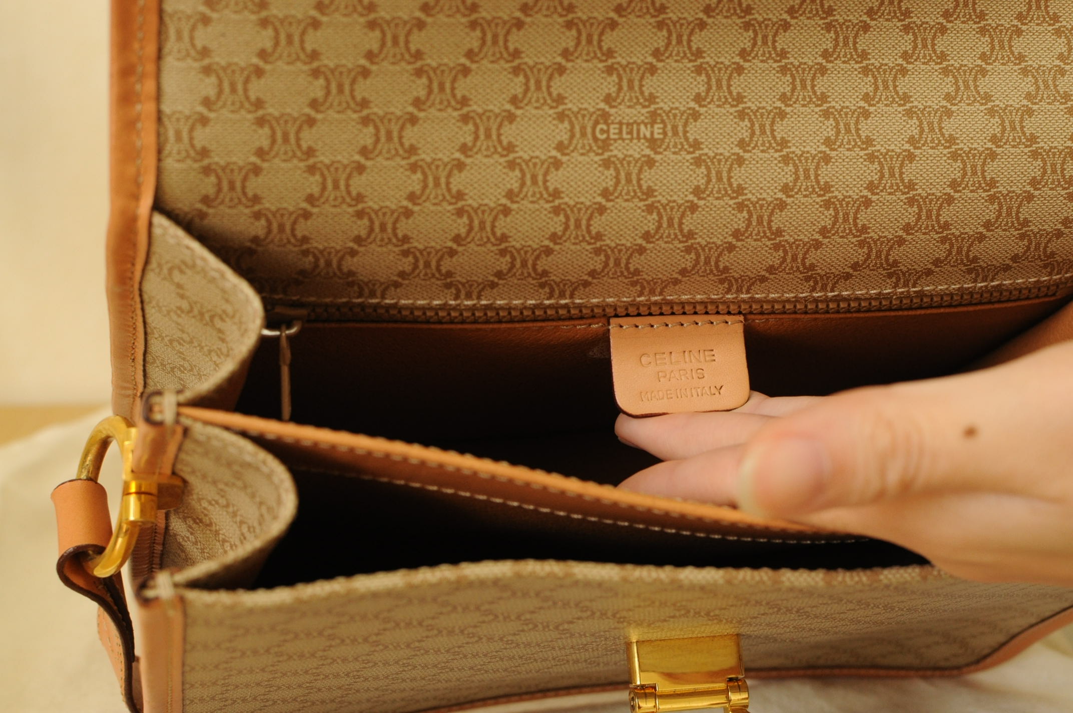 CELINE Shoulder bag02 ภายนอกและภายในสะอาด ไม่มีรอยเปื้อนใดๆ โลหะข้างหน้ายังใหม่ค่ะ โดยรวม 95%