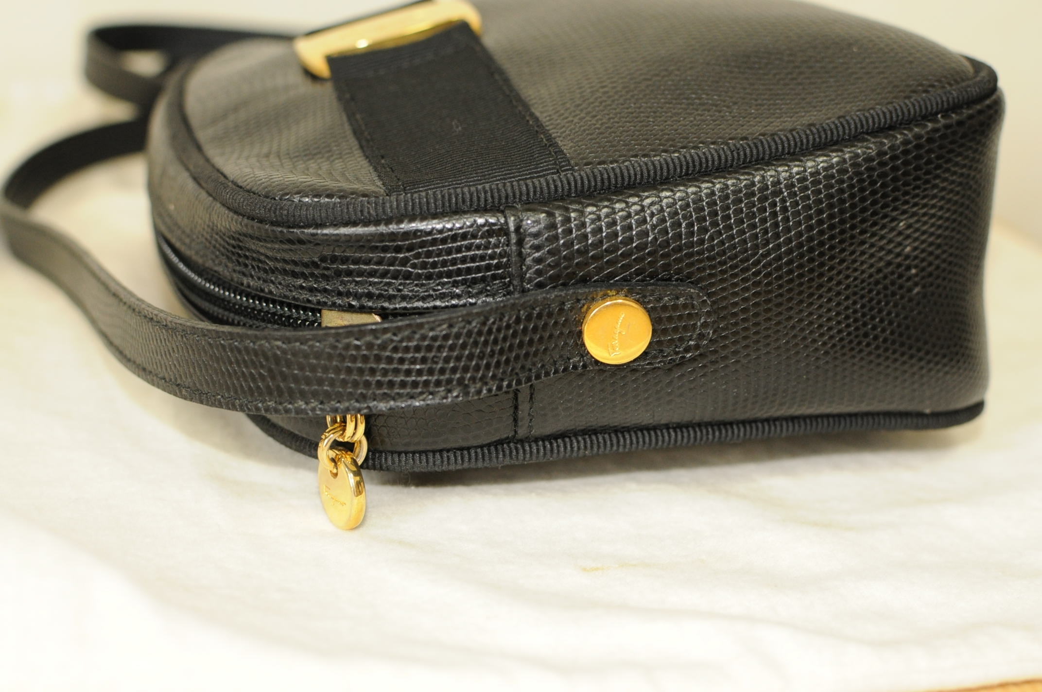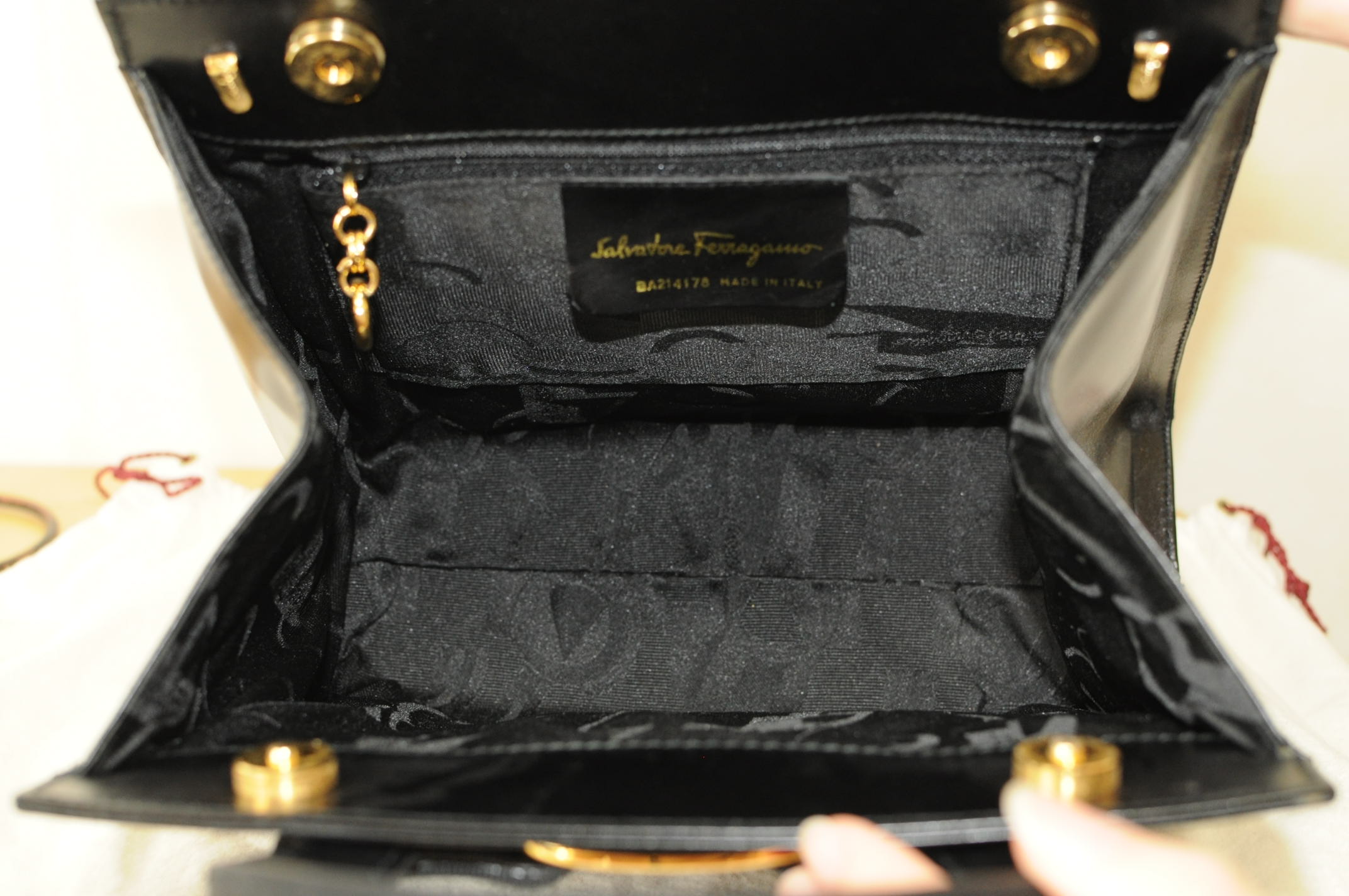 FERRAGAMO handbag น่ารักมากๆรุ่นนี้ สภาพโดยรวม 95% มีรอยบุบเล็ก??ข้างหลังกระเป๋าตามรูปค่ะ ภายในใหม่สะอาดน่าใช้