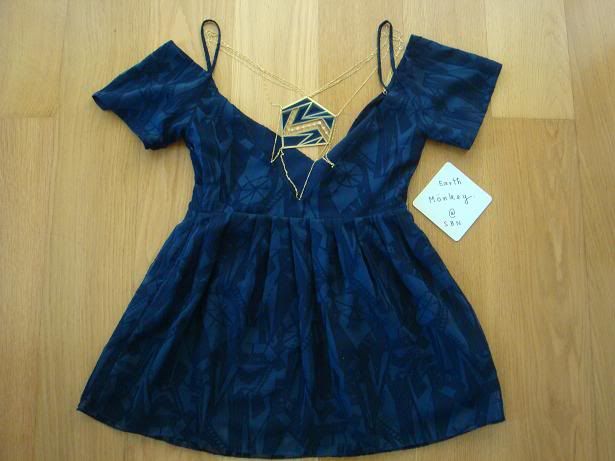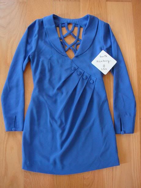 ชุด kloset A/W 2010 เดรสแขนยาวคอบัว จับจีบหน้าอกสีน้ำเงินอมม่วง size s ของใหม่พร้อมป้าย ราคา 7,950 บาท