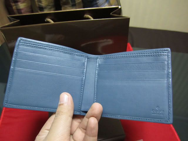 3. Wallet Gucci 6 cards -ข้างนอกเป็นหนัง Guccisima สีน้ำตาล ข้างในเป็นหนังสีฟ้า ใส่บัตรได้ 6 ใบ ใส่ธนบัตรได้ 2 ช่อง รุ่นนี้เป็นรุ่นใหม่ล่าสุดของ Gucci นะครับ เพิ่งซื้อจาก Singapore มาก่อน X'Mas ที่ผ่านมา ใช้ไปประมาณ 3 วัน สภาพดีมาก ราคา 6,500 บาทถ้วนครับ