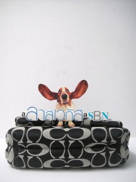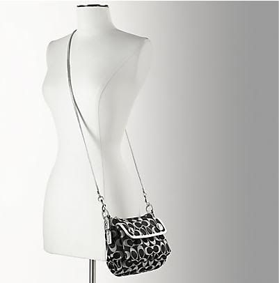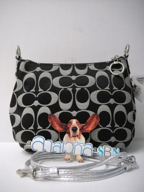 COACH POPPY SIGNATURE BUTTON CROSSBODY 9"LX4.5"HX2.5"W ขนาดใส่ของจุกจิก สีดำตัดด้วยขอบสีเงิน 4,700.-ค่ะ