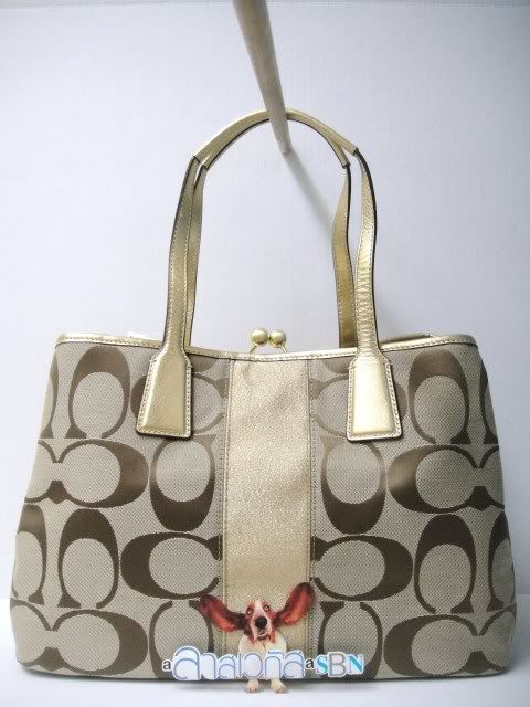 COACH SIGNATURE STRIPE FRAME CARRYALL 15"LX 9.5"HX 6"W ใบใหญ่จุของ มี 2 สี 7,000.-ค่ะ