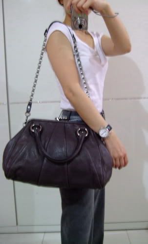 ด้ายข้างกระเป๋าจะมีโลหะ ติดเขียนว่า marc jacob ด้วยนะคะ สังเกตได้จากรูปนี้ค่ะ ตอนสะพายค่ะ