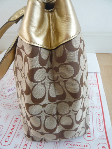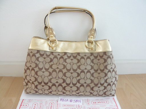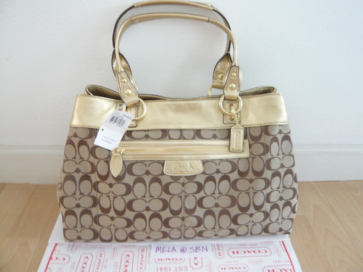 เป็นกระเป๋าซึ่งมาจาก outlet อเมริกา จะไม่มีถุงให้เลยนะค่ะ ได้แต่กระเป๋าอย่างเดียวเลยใบแรก รุ่น Pen signature LG shop สีน้ำตาลทอง ขนาด 27 X 43 CM ราคา