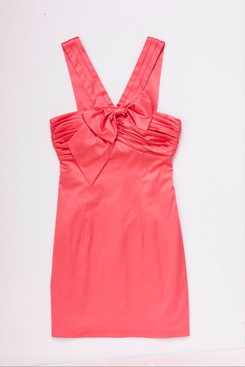 เดรสสายไขว้ชายระบาย ลายทางขาวชมพู