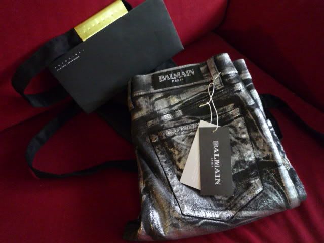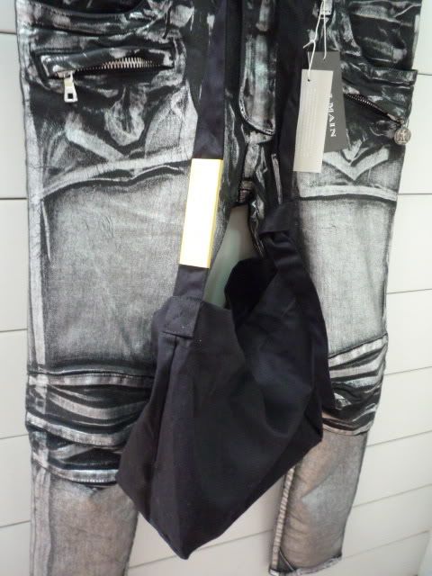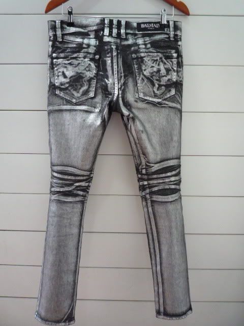 FOR SELL: BALMAIN HOMME BLACK/SILVER WAXED BIKER JEANS SS11 w30 (LIKE NEW WITH TAG)