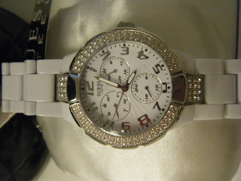 ขายนาฬิกาผู้หญิงสวยมาก ๆ ของใหม่ 100% สายทำจากพลาสติคสีขาว หน้าปัดประดับคริสตัล + Chrono + Warranty ขอขายราคา 4,000 บาท สามารถนัดดูของได้ที่อนุสาวรีย์ ถุงใส่เป็นพลาสติคสีดำสามารถดัดแปลงไปใส่ของอย่างอื่นได้ ติดต่อ 0836149994