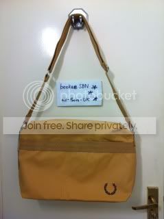 FRED PERRY messenger bag เป็นหนังนิ่ม สีออกน้ำตาลอ่อนนะคะ ใบใหญ่จุใจค่าขนาด 48x30x14 cm 3000 ka