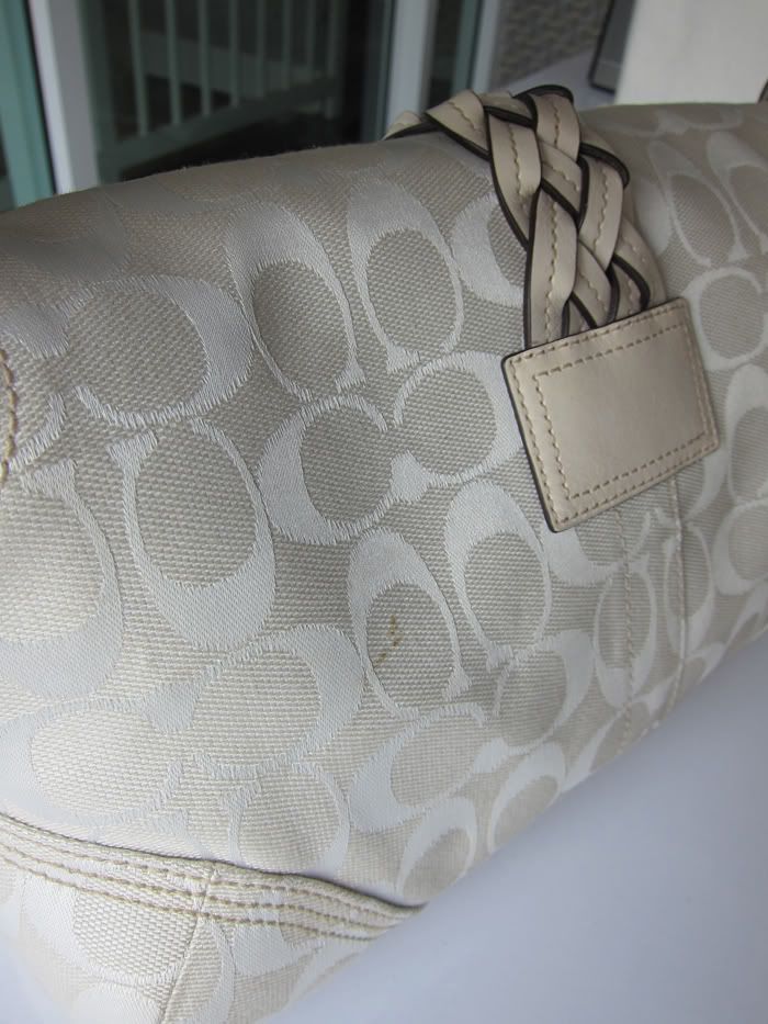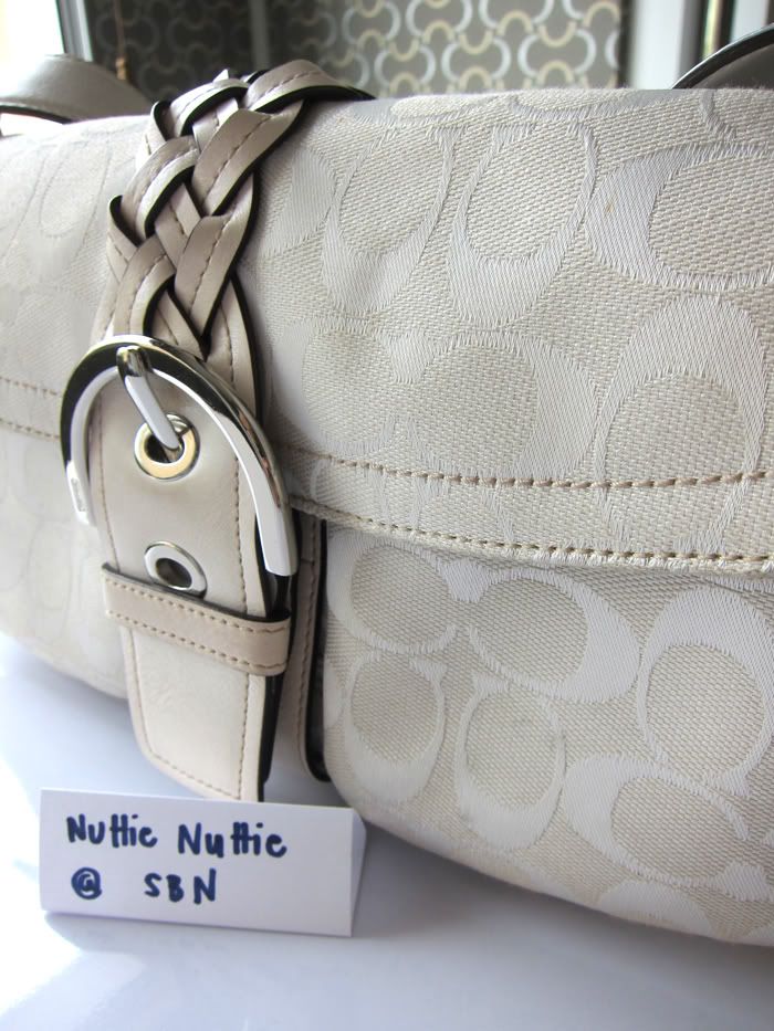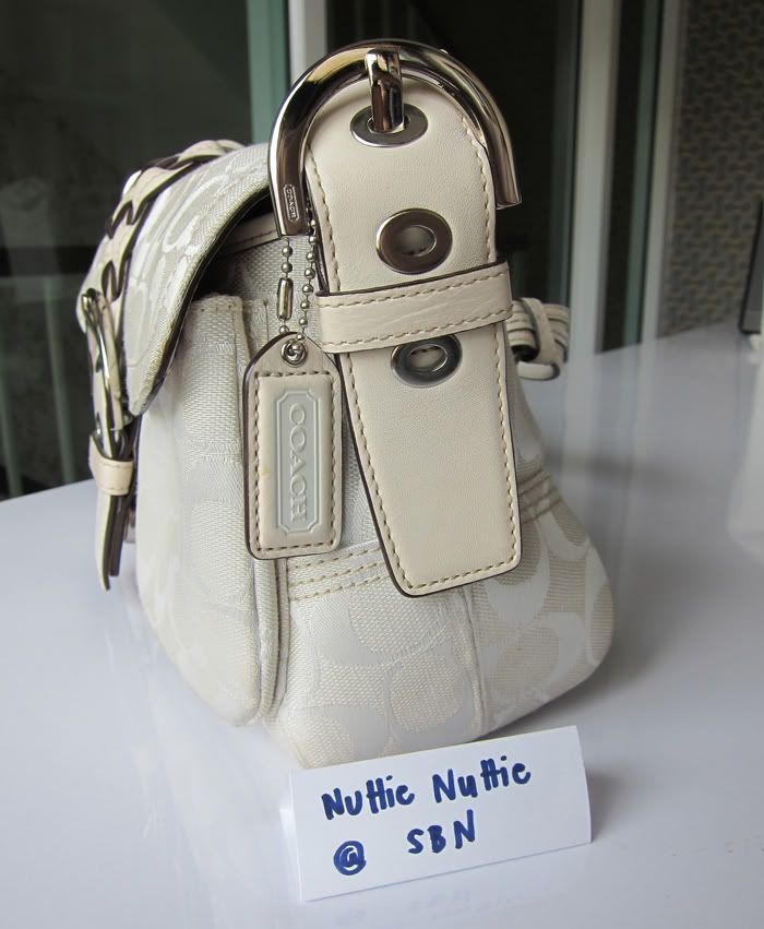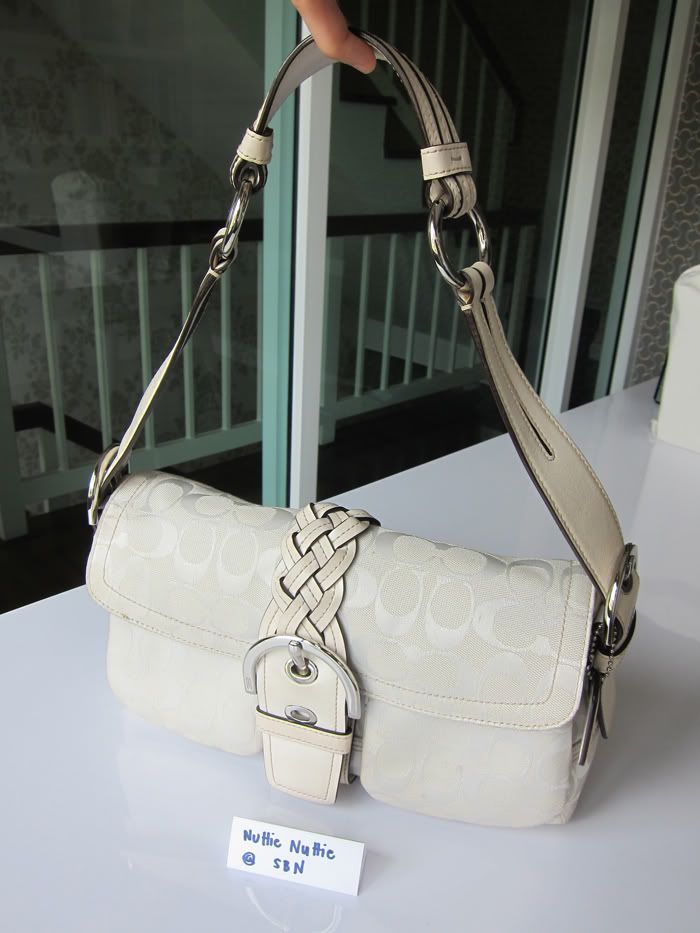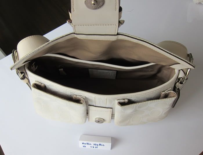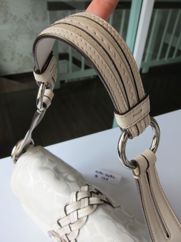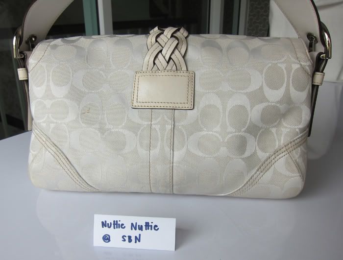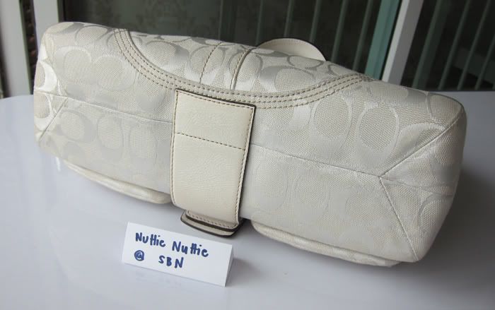 กระเป๋าใบนี้ตกแต่งด้วยหนังแท้สีขาวค่ะ สวยใบกระทัดรัดดีค่ะ
