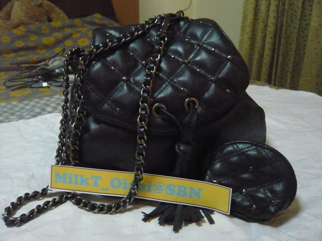 4.กระเป๋าหนัง Ninewest สายโซ่ ปักหมุด มีกระเป๋าเศษสตางค์ ใบเล็กให้ด้วยค่ะ ด้านหลังสามารถเปลี่ยนเป็นเป็ได้ค่ะ used 90% สภาพดีมากๆๆ ขาย 1500 ค่ะ งดต่อรองนะคะ T-T
