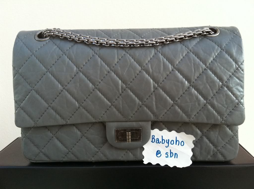 22. New Chanel Reissue 227, Grey Color, SHW, Matte Age Calf skin