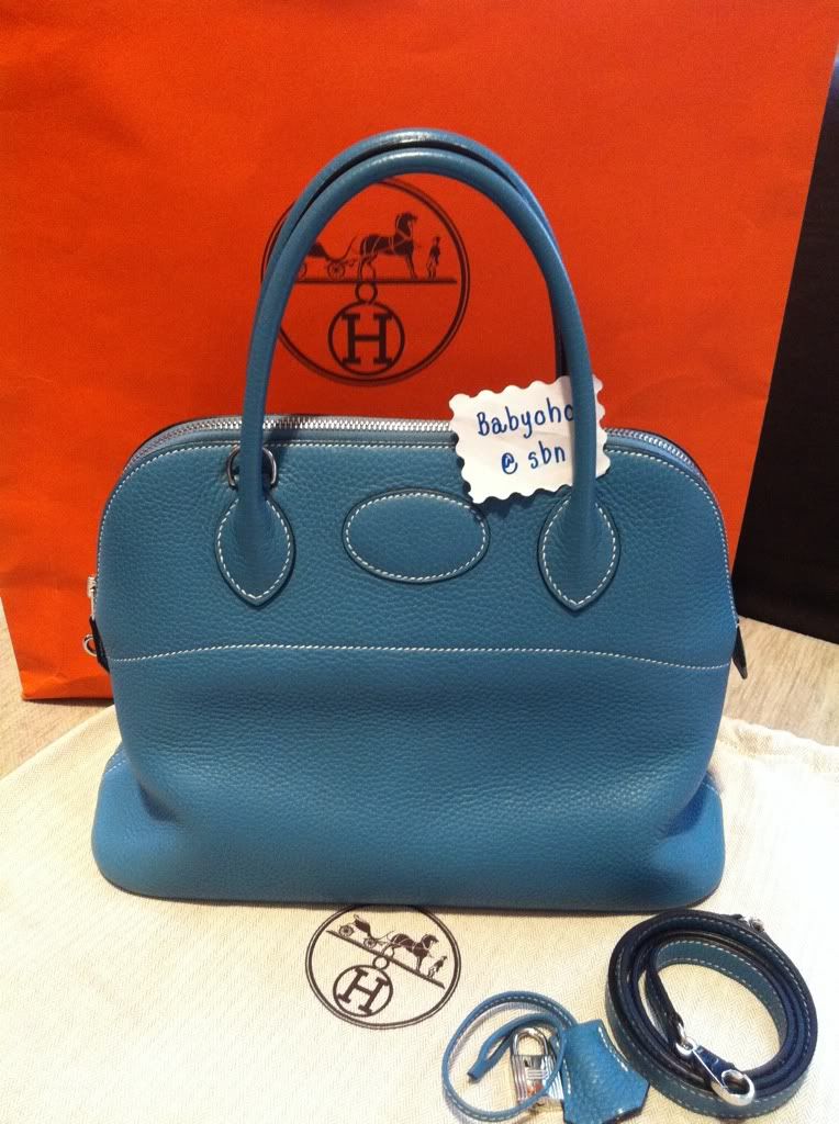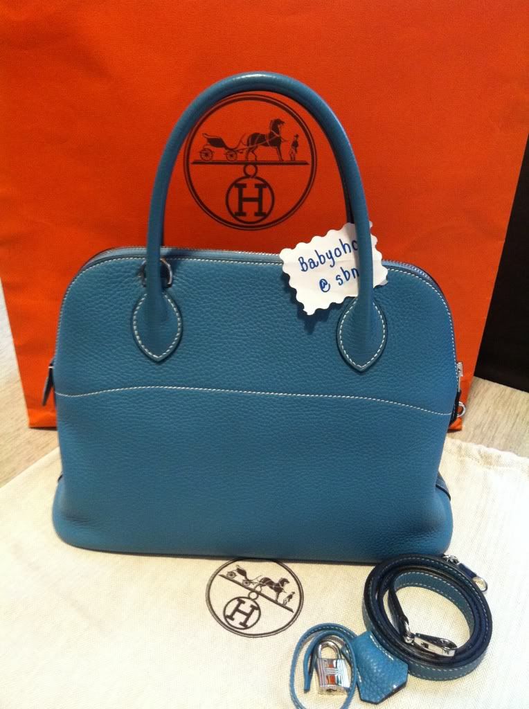 1. Hermes Bolid 31, Blue Jean, phw, Clemence Leather, Stamp G>>>