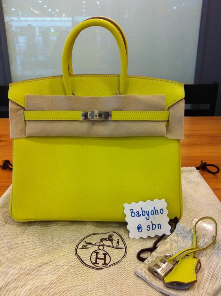34. New Birkin 25, Lime + Griss Pearl, Epsom, Stamp O>>