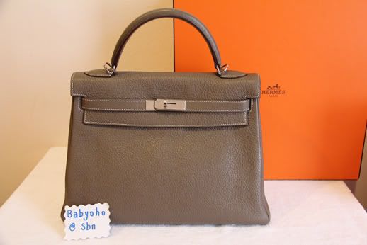 4. Hermes Kelly 32, Etoupe color, Clemence, Phw, Stamp M