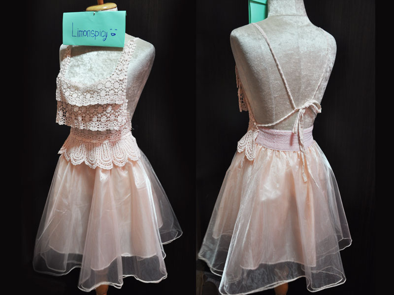 เสื้อ : สีชมพูบานเยน แต่งชายระบาย 3 ชั้น ผ้าไหมตัดชีฟองอย่างดี ด้านหลังงมีซิปงานดีของใหม่ไม่ต้องกัวค่ะ ไซส์ S ขาย 500.-