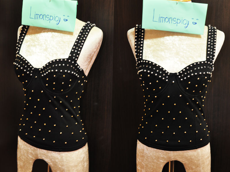 แต่งหมุดสีทองบริเวณคอ ของใหม่สวยมาก แม่ค้ามีสองสี สีดำใส่กับบอดีคอนสีสว่างหรือกางเกงเอวสูงสวยมาก