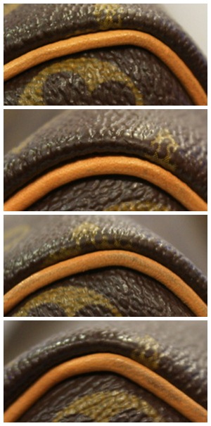 ใบนี้มียางดำๆเปื้อนหน่ะค่ะไม่กล้าเอาอะไรเช็ด สภาพหนังยังดี แต่เปื้อน ข้างในมีรอยกระดุมกดทับ แต่ขอบและตัวกระเป๋าไม่มีรอยขีดข่วนเลยจ้า