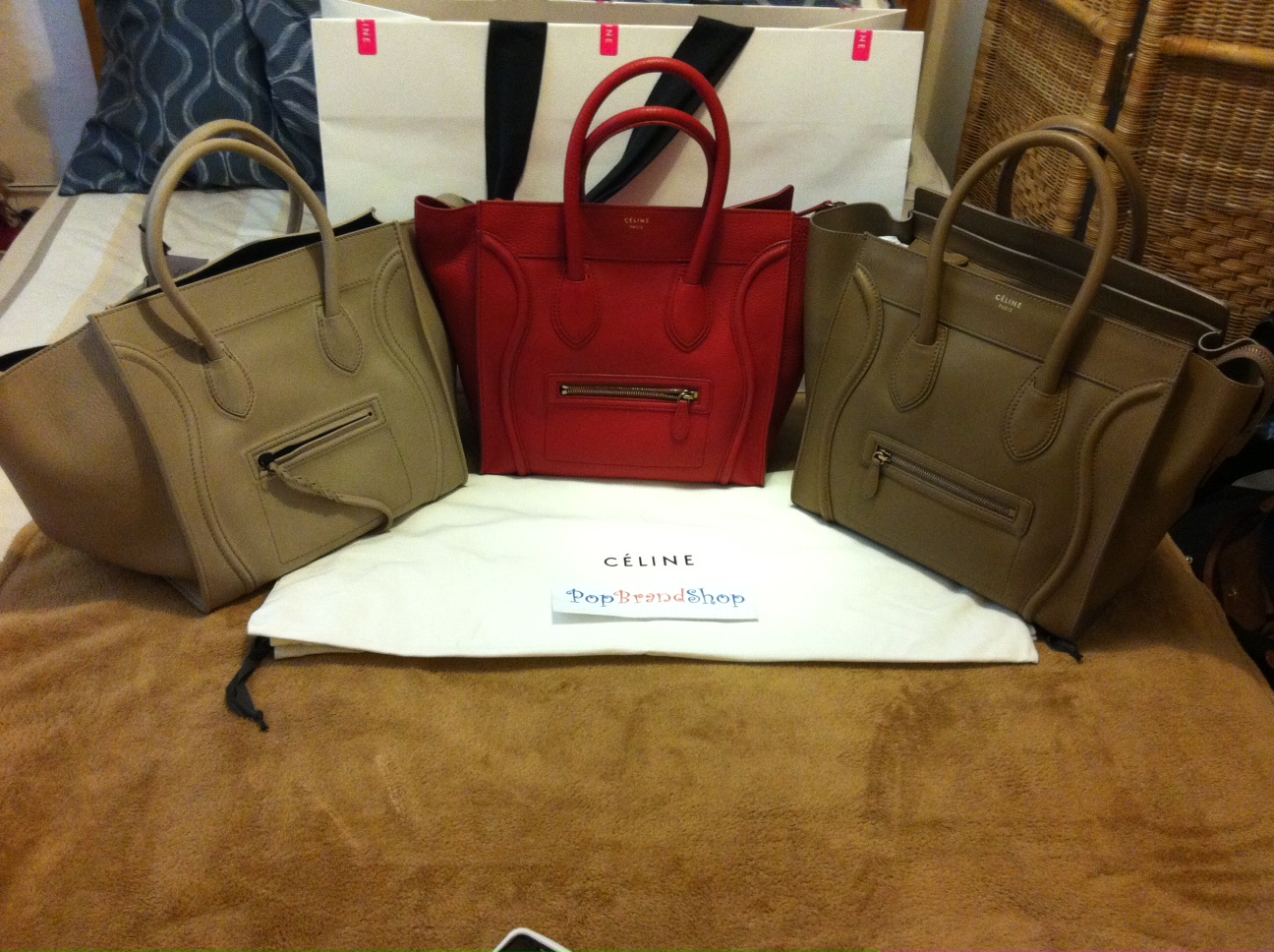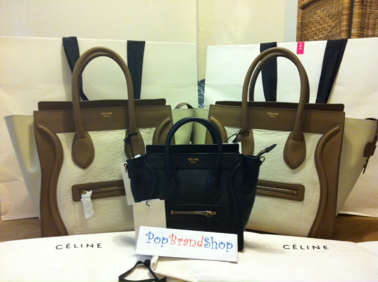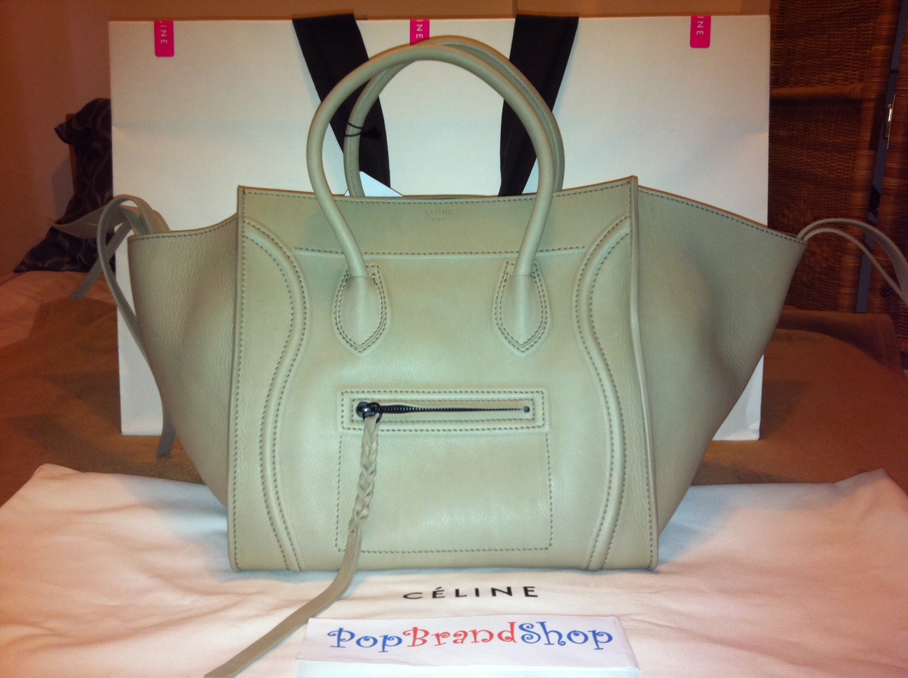 รุ่นใหม่ล่าสุด !!! Celine Phantom Supple Calf (หนังนิ่มมากกว่า รุ่นluggage shopper) Black , Taupe,Emerale, midnight blue 72000 บาท ( size 35*34*31 cm เท่ากับ size mini luggage shopper ค่ะ)