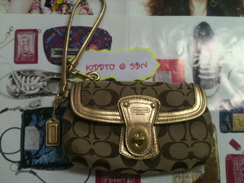 coach 41941 รุ่นนี้สวย หรูมากค่ะ สามารถคล้องแขน หรือสะพายได้เล็กน้อยค่ะ มีมา 1 ใบ สีทองตามรูป มาพร้อมทิชชู่ห่อ กล่อง แคร์การ์ด ค่ะ