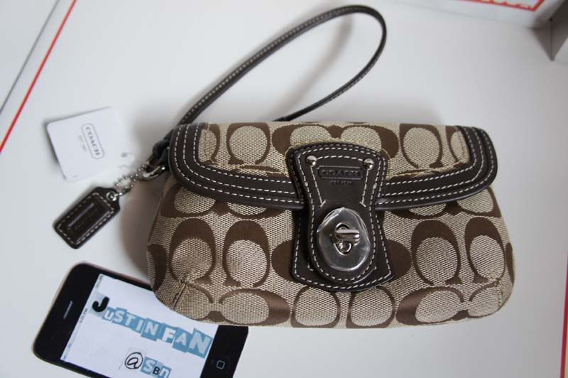 5. Coach Signature Mahogany Wristlet Purse สีน้ำตาลเข้ม ใหญ่พอใส่มือถือได้เลยค่ะ