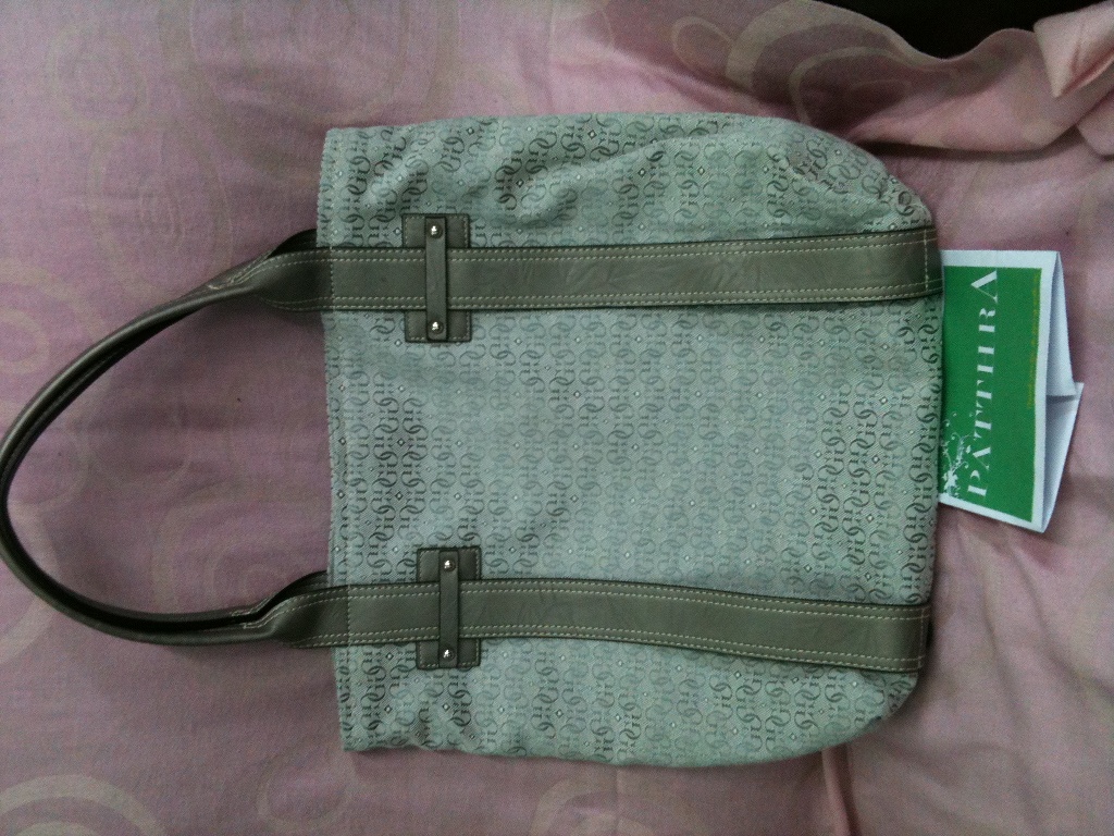 15. AIGNER Classidy nylon large hand bag สีเบจ gold ware พร้อมกระเป๋าเล็กพกพา