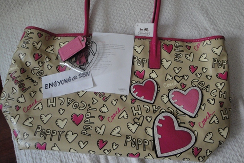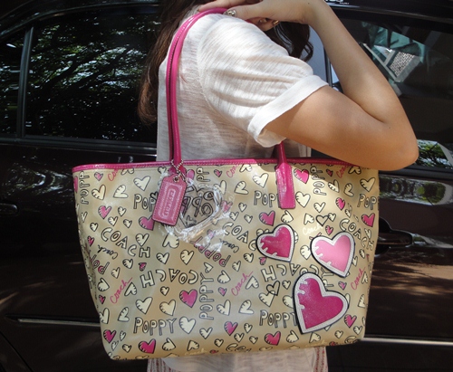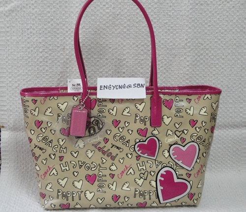 7. COACH POPPY - 16507 Coated Canvas Graffiti สี Khaki/Pink (สีน้ำตาล/ชมพูบานเย็น) เป็นของใหม่ป้ายห้อย ทรงคล้าย Neverfull อุปกรณ์มี น้องเป๋า ถุงผ้า และ Care Card ราคารวมส่ง 6,490 บาท