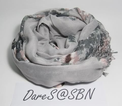 ผ้าพันคอสีเทาลายดอก ขนาด 80*220 ซม. ผ้าแบบเดียวกับผืนข้างบน มีผืนเดียวจ้า